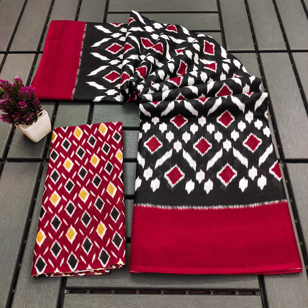 SIMRAN PURE MULMUL COTTON IKKAT PRINTED BLACK SAREE SIMRAN PURE MULMUL COTTON IKKAT PRINTED BLACK SAREE