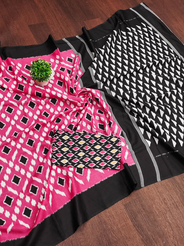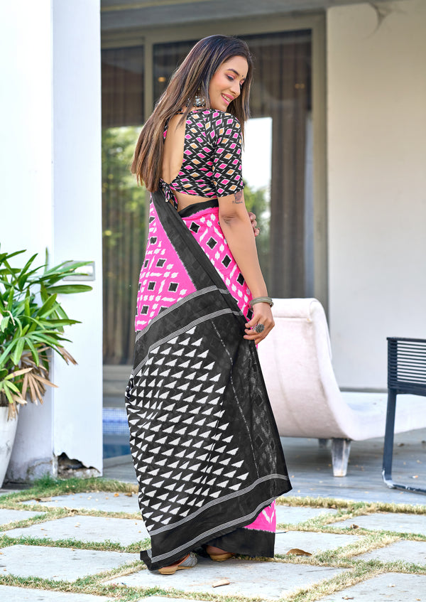 SIMRAN PURE MULMUL COTTON IKKAT PRINTED PINK SAREE SIMRAN PURE MULMUL COTTON IKKAT PRINTED PINK SAREE