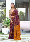 AARICA PURE MULMUL COTTON BATIK STYLE HAND BLOCK PRINTD BROWN SAREE