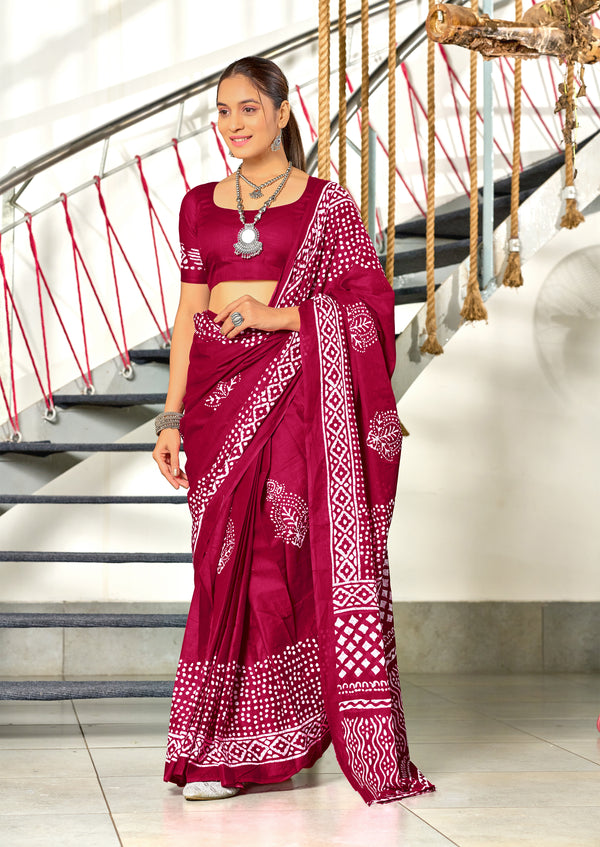 BATIK SESSION MULMUL COTTON HAND BATIK BLOCK PRINT DARK PINK SAREE BATIK SESSION MULMUL COTTON HAND BATIK BLOCK PRINT DARK PINK SAREE