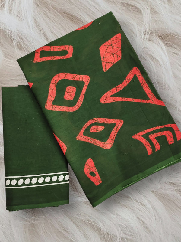 SAREES   : *6.30 MTR PURE COTTON BATIK STYLE FANCY BLOCK PRINT SAREES WITH BLOUSE PICE*