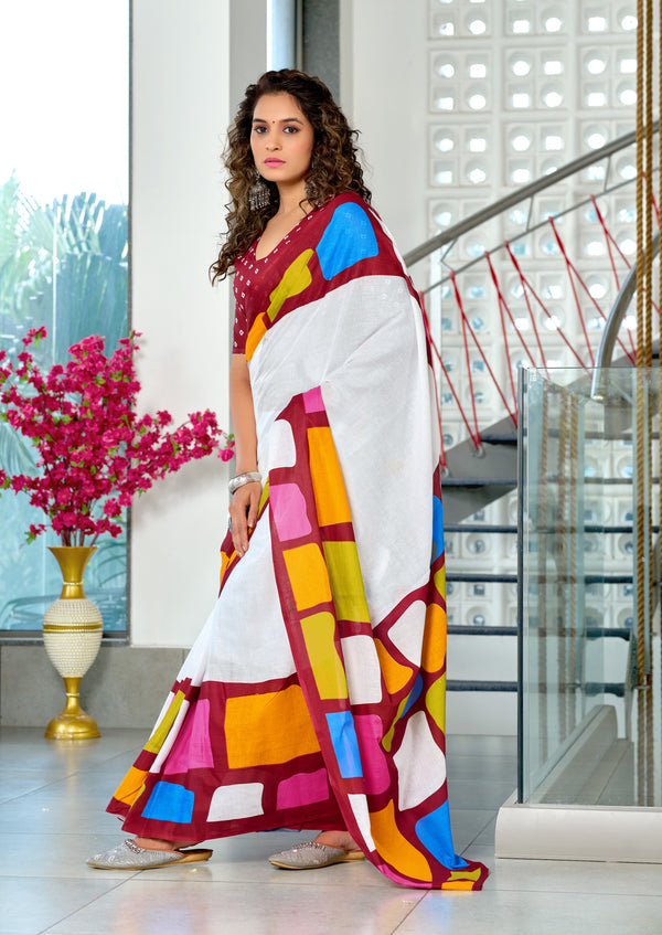 BELLA PURE COTTON FANCY BAGRU BLOCK PRINT WHITE AND MAROON SAREE BELLA PURE COTTON FANCY BAGRU BLOCK PRINT WHITE AND MAROON SAREE