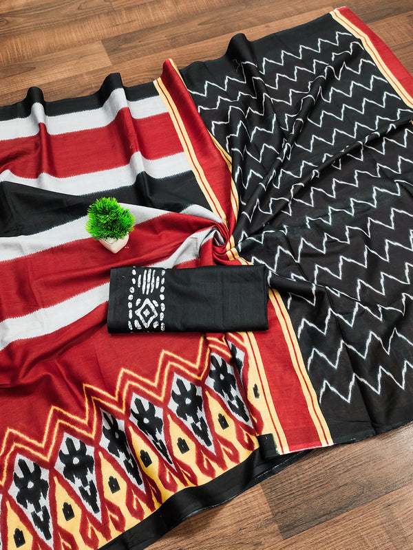 SAREES : *6.30 MTR PURE MULMUL COTTON IKKAT HAND PRINT SAREES WITH BLOUSE PICE*
