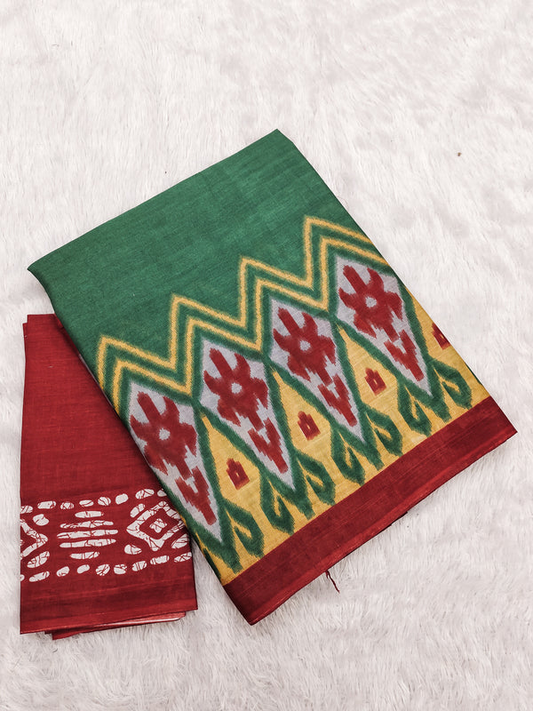 SAREES : *6.30 MTR PURE MULMUL COTTON IKKAT HAND PRINT SAREES WITH BLOUSE PICE*