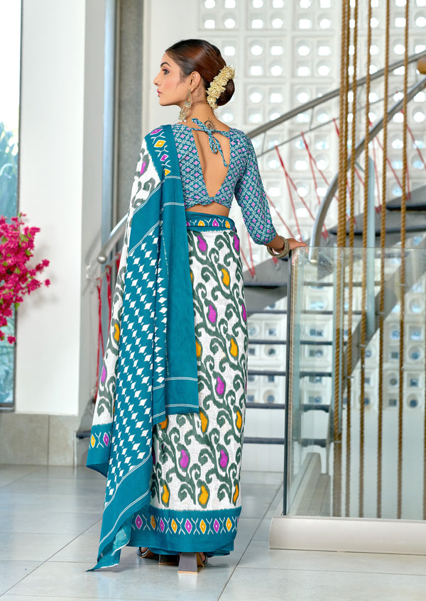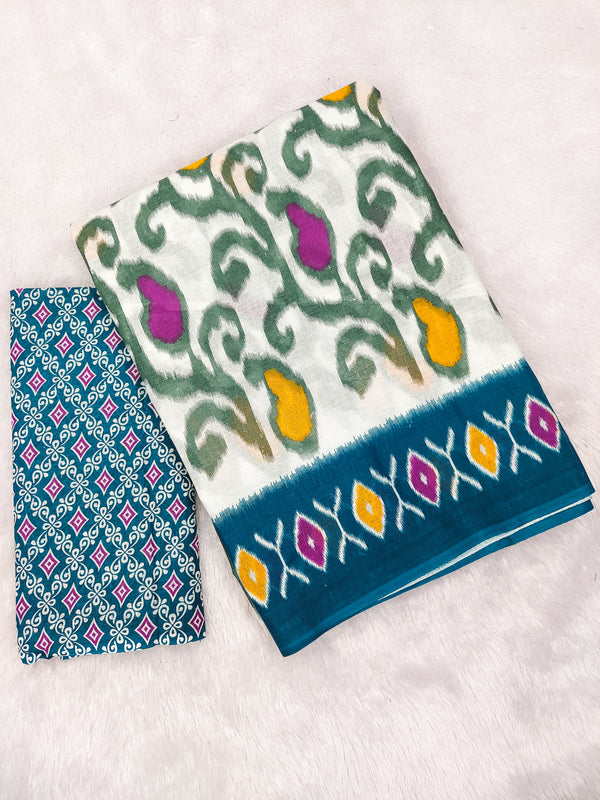 JYOTHIKA PURE MULMUL COTTON IKKAT PRINTD BLUE SAREE JYOTHIKA PURE MULMUL COTTON IKKAT PRINTD BLUE SAREE