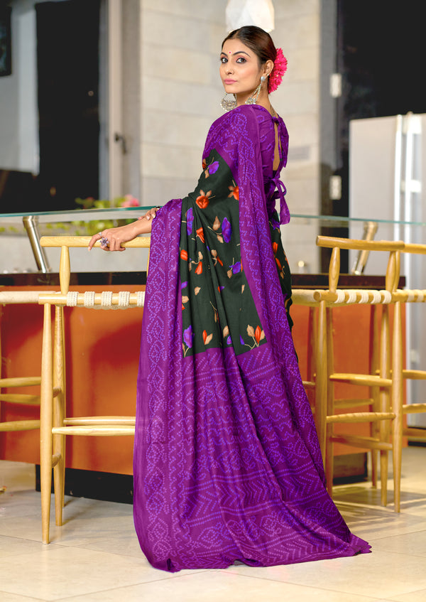 KALKI PURE MULMUL COTTON FLOWER WITH BANDHANI BLOCK PRINTD DARK GREEN SAREE KALKI PURE MULMUL COTTON FLOWER WITH BANDHANI BLOCK PRINTD DARK GREEN SAREE