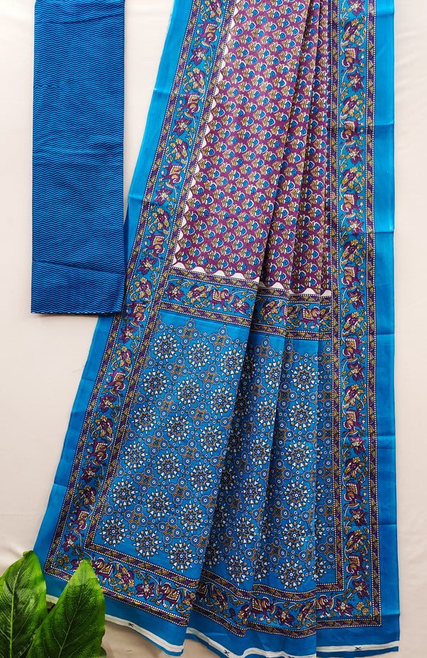 MISS JULIYANA PRIMUM COTTON JAIPUR BAGRU PRINTED COTTON MULMUL PURPLE SAREE MISS JULIYANA PRIMUM COTTON JAIPUR BAGRU PRINTED COTTON MULMUL PURPLE SAREE