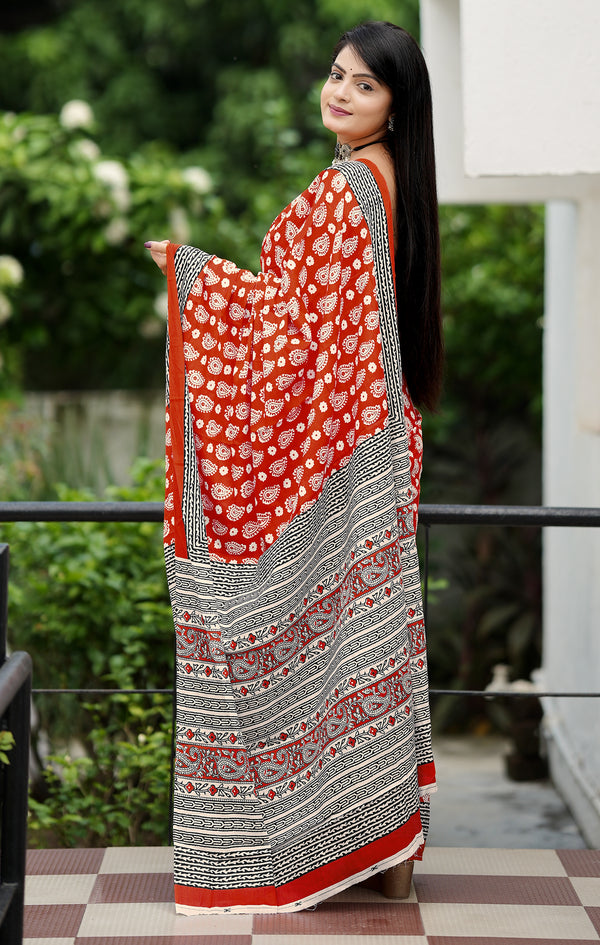 MISS JULIYANA PRIMUM COTTON JAIPUR BAGRU PRINTED COTTON MULMUL RUST RED SAREE MISS JULIYANA PRIMUM COTTON JAIPUR BAGRU PRINTED COTTON MULMUL RUST RED SAREE