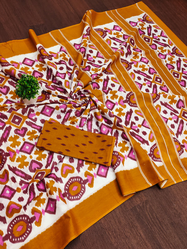 NAYANTHARA PURE MULMUL COTTON IKKAT PRINTD MUSTARD AND PINK SAREE NAYANTHARA PURE MULMUL COTTON IKKAT PRINTD MUSTARD AND PINK SAREE