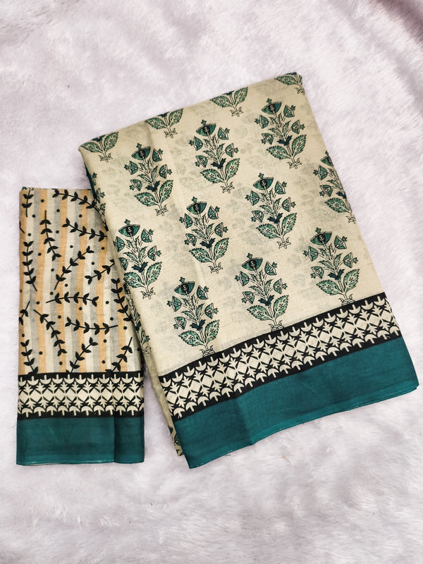NIRMALA PURE MULMUL COTTON HAND BLOCK PRINT GREEN SAREE NIRMALA PURE MULMUL COTTON HAND BLOCK PRINT GREEN SAREE
