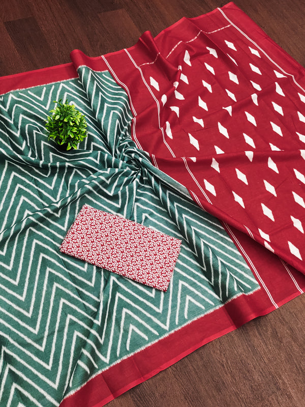 FABRICS  : MULMUL COTTON SAREES   : 6.30 MTR PURE COTTON FANCY HAND BLOCK PRINT SAREES WITH BLOUSE PICE COLOR : TEAL SINGLE PCS READY
