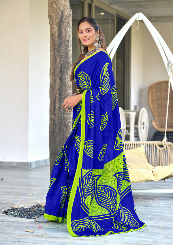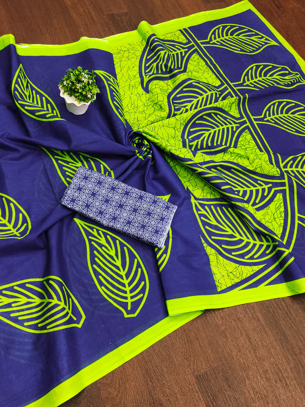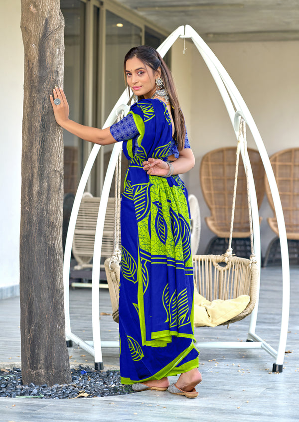 PRANAVI PURE MULMUL MORDAN HAND BLOCK PRINTD BLUE SAREE PRANAVI PURE MULMUL MORDAN HAND BLOCK PRINTD BLUE SAREE