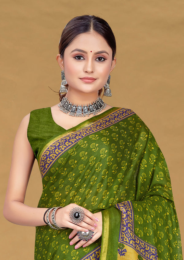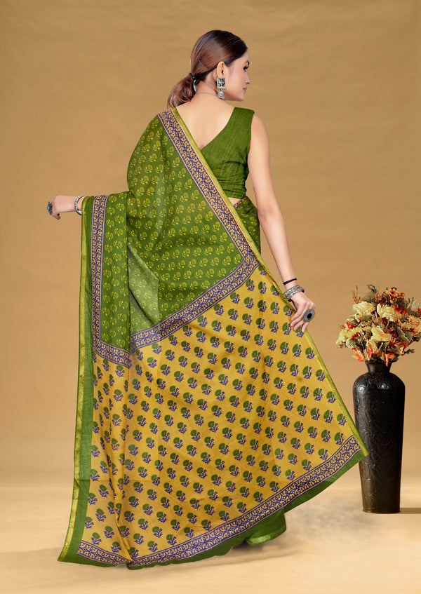 SUDHA BAGRU BLOCK PRINT SOFT MASLIN COTTON ZARI GOLDEN BORDER GREEN SAREE SUDHA BAGRU BLOCK PRINT SOFT MASLIN COTTON ZARI GOLDEN BORDER GREEN SAREE