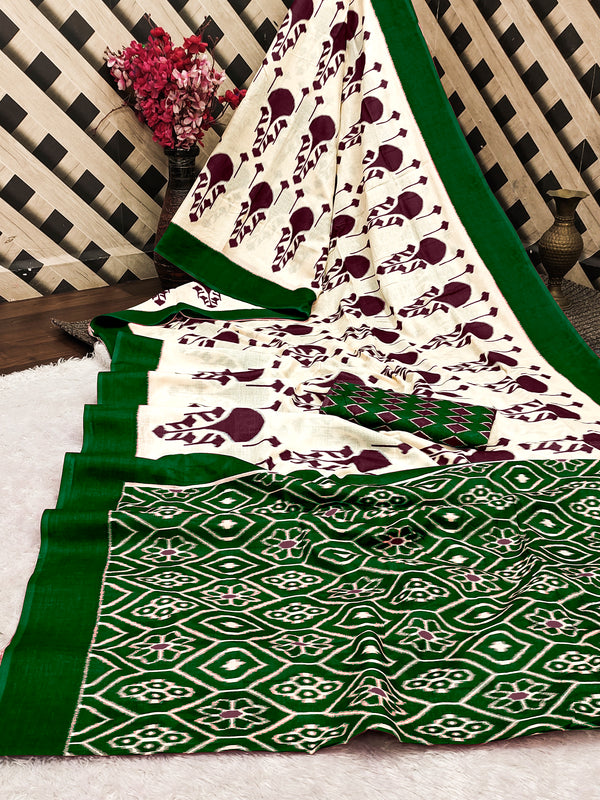 VEDIKA PURE SOFT COTTON FANCY IKKAT BLOCK PRINT BROWN AND GREEN SAREE VEDIKA PURE SOFT COTTON FANCY IKKAT BLOCK PRINT BROWN AND GREEN SAREE