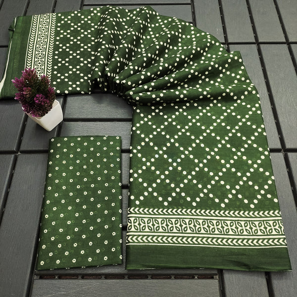 VICTORIYA PURE MULMUL COTTON HAND BANDHANI BLOCK PRINT GREEN SAREE VICTORIYA PURE MULMUL COTTON HAND BANDHANI BLOCK PRINT GREEN SAREE